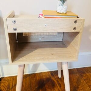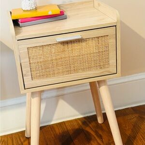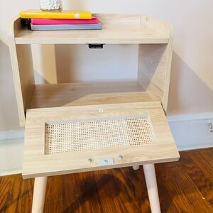 Stylish wooden side table from Wayfair. Perfect for living room or bedroom decor. Never used. Measures 14”x11” x 22 1/2” tall.