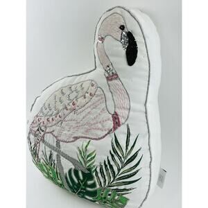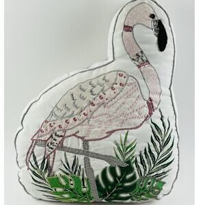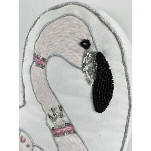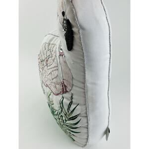 Accent Throw Pillow Beaded Flamingo Tropical Home Decor 19" Pink Monstera Leaf