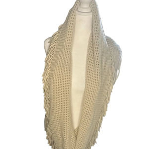 Accented Beige scarf with fringes. Great accessory scarf with anything!