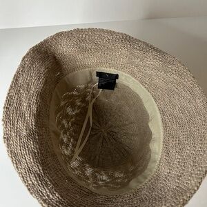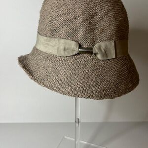 Ribbon band accented with metal and 4 1/2 inches deep crown.