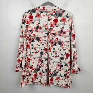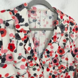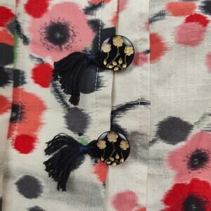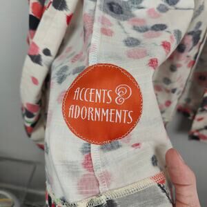 Accents & Adornments Blazer Womens Medium White Cherry Blossom Floral Linen Boho