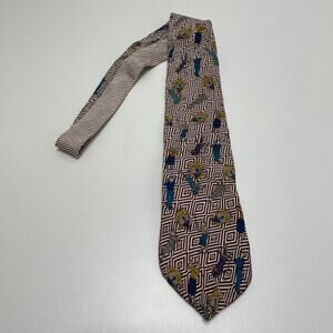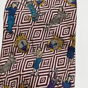 Men’s novelty print golfing tie, 100% silk, golf club, swinging, golf bags, geometric pattern.