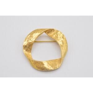 Accesocraft NYC Vintage Pin Brooch Brushed Gold Textured Circle Signed 1970s 9B