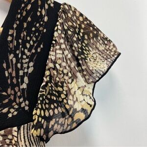 Blacks and browns print semi-sheer layered flutter sleeve top.