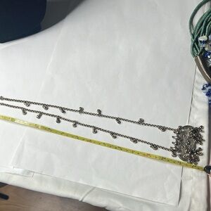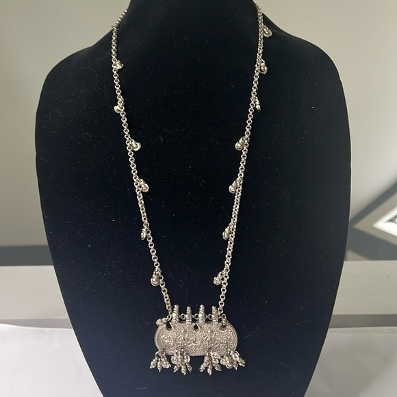 This is a beautiful Accessocraft NYC Silvertone Etched Metal 15” Long Necklace. Can be worn at full length or doubled