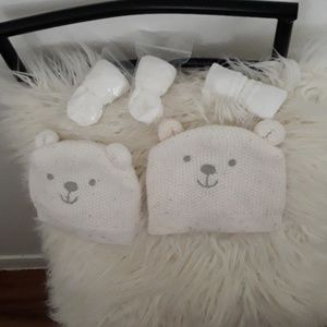 0-3, 6-9 hats, host, socks, red dresses, mittens