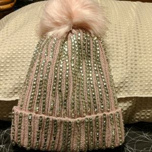 New sparkling pink & white with 100 precent acrylic hats just in time for the Winter women or child one size for all