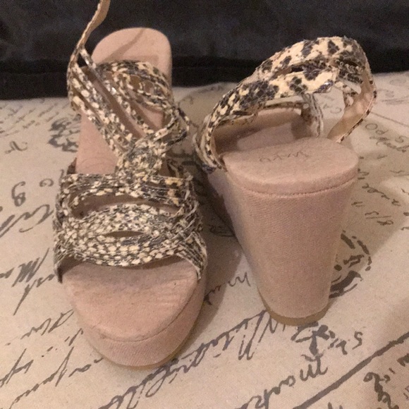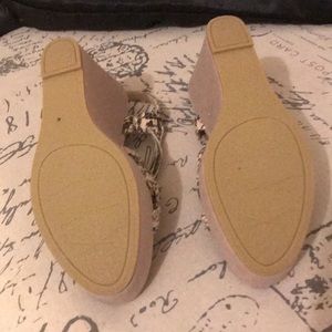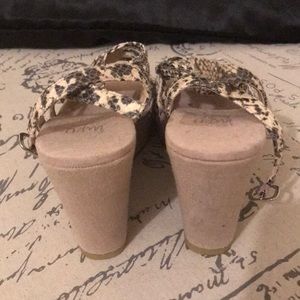 Leather wedges with 3 1/2 wedge heel. Snakeskin feel. Never worn. All offers must go through PoshMark. Thank you for stopping by🌼