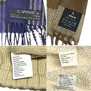 V.FRAAS cashmink purple plaid scarf with fringe 100% acrylic