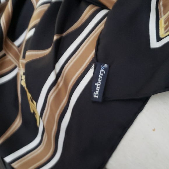 Burberry Silk scarf measures 32 × 32 100% Authentic tag lightly stitched back Excellent condition no fade no Holes no Pulls