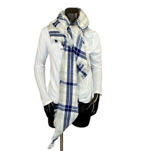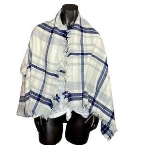 Made of acrylic which means easy care! Cream and Navy plaid.