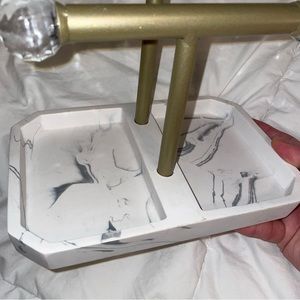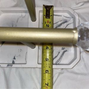 Back stand is 10 inches tall and front stand is 6 inches tall.