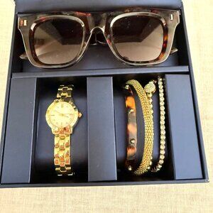 Accessory Gift Set Tortoise Sunglasses Goldtone Watch Bracelets Decorative Box