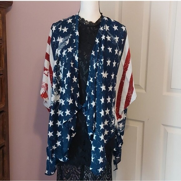 Accessory St Patriotic American Flag Shawl Shrug Wrap Swim Cover One Size NWT