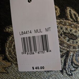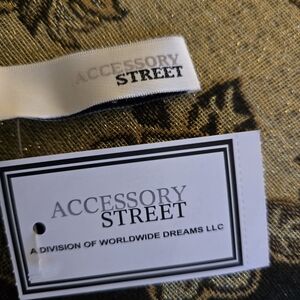 The Accessory Street multi-colored metallic gold, Brown Paisley flowered long scarf is a stylish accessory perfect for women. made of 90% polyester and 10% metallic material, this rectangular scarf features a beautiful Paisley and floral pattern with glitter accents and fridge details. the metallic gold, brown color adds a touch of sparkle, making it a versatile piece for the winter, fall, in Spring seasons. hand wash only to maintain its quality, the scarf from Accessory Street is a fashionable and functional addition to any wardrobe. the scarf retails for $40.