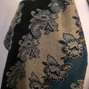 Accessory Street Elegant Floral Patterned Scarf - Metallic Gold/Dark Blue/Aqua