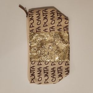 Canvas with gold sequins.