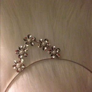 Cute and delicate accessory bundle. Includes a white lace bow clip, black lace choker with gold heart locket, and silver cat ears headband. All are in like new condition.