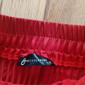A vibrant red a-line skirt with fine accordion pleats and a midi-length. So easy to dress up or down! I paired it with a black tee and scarf for a day of shopping; you could also pair with a cropped blouse and heels for a night out. The back is elasticized so it's very comfortable. Size XS, great preowned condition.