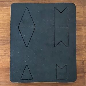 This AccuCut Ellison 'Pennant Flag" Wooden Die is in excellent preowned condition. This is a rubber and wood die featuring 4 pennant cut outs. This die measures 4.75 inches X 5.75 inches. Please note that this die has been previously used and thus may show signs of wear consistent with normal use including scuffs on the wood, scuffs on the rubber, wear on the rubber, and other signs consistent of wear. Please refer to the provided photographs to verify the exact condition of this die.