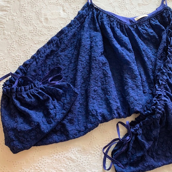 Cobalt balloon sleeve embroidered blouse. No size marked but fits size Small best.