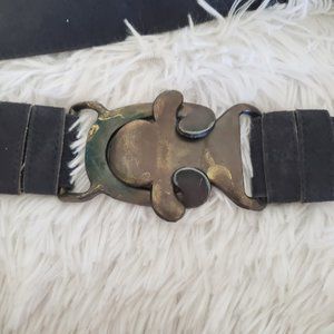 Accurate Women Leather Belt 36 Vtg Black Reverse Cow Leather Petina Clasp Buckle
