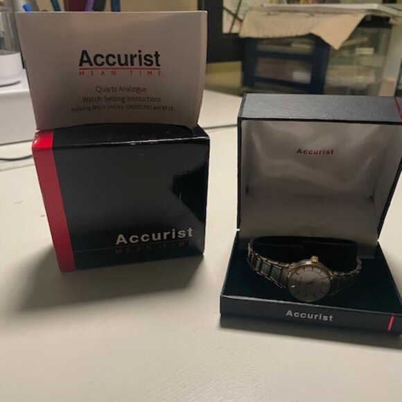 Accurist quartz analog watch with original box. Accurist is a practical and attractive watch. Material of the case is Stainless Steel and the Silver dial gives the watch that unique look. 50 metres water resistancy will protect the watch and allows it to be submerged in water for periods, so can be used for swimming and fishing. It is not recommended for high impact water sports. Retails for $158