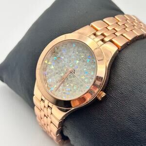 This beautiful Accutime women's watch features a stunning crystal dial and a chic rose gold finish. The 34mm size is perfect for everyday wear. It's in working condition and ready to add a touch of elegance to your wrist!