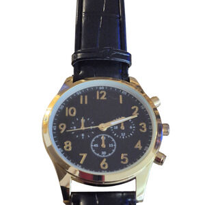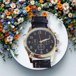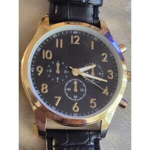 Accutime Mens Watch Large black dial tachymeter style New Battery Thin Stylish