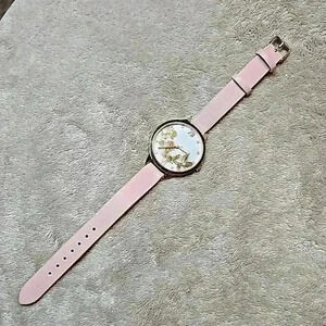 This soft, simulated leather band watch from Accutime has a lovely pattern of roses outlined in gold on the face. It's a sweet, feminine piece great for daytime informal events and social activities, garden parties, or the office. It has a stainless steel back and Japanese movement.