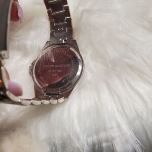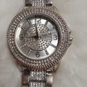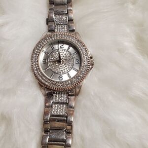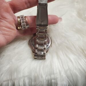 Accutime silver stainless steel and rhinestone embellished watch