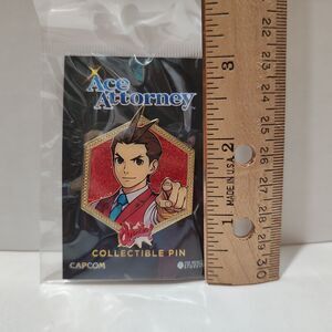This is a brand new, factory sealed, official Phoenix Wright/Capcom enamel pin.
