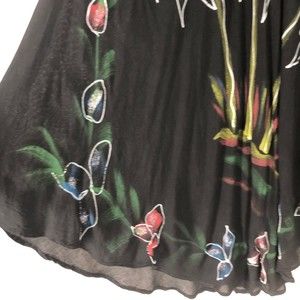 Ace Fashion Mini Dress/Tunic Top Handpainted Graphic Print of Palm Trees Flowers; Free Flow fit Size; Silky Rayon, asymmetrical hem; Add a belt for a vintage look