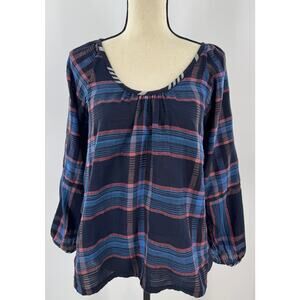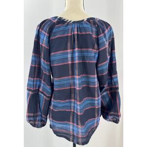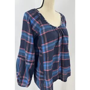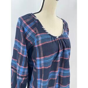 Ace & Jig Black Plaid Pullover Peasant Top Check Balloon Sleeve Blouse Small