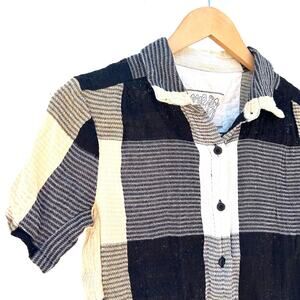 Ace & Jig Button Down Top Checkered Patchwork XS Cotton Black Yellow Shirt