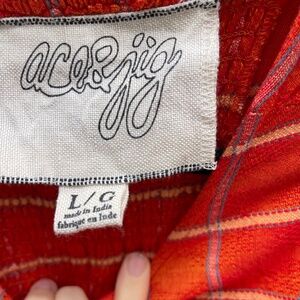 Never worn. Size L a sleeveless knee length dress with a crew neck, elasticated back bodice smocking, and side pockets.   made in India 100% organic cotton. machine wash cold or dry clean, tumble dry low this textile is made with 100% GOTS (Global Organic Textile Standard) non- GMO organic cotton without the use of harmful chemicals and synthetic fertilizers.  Large : 38-39 bust, 32-33 waste, 42-44 hip.