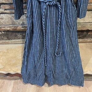 Ace & Jig cotton chambray striped long sleeve maxi dress. 100% cotton chambray fabric with slubs and raised stripes. Matching rope belt with side seam string loops. Hand pockets. Quarter button band collar. Gently used preowned condition, see photos. Most items ship next business day.