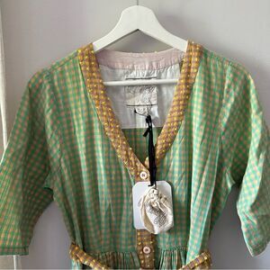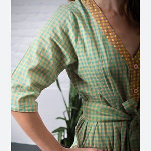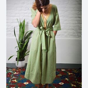 Started by two textile-obsessed Brooklynites in 2009, this label features some of our favorite laid-back shapes done up in softly textured, custom-dyed, hand-loomed fabric from India. This pretty mixed-gingham midi dress has roomy short sleeves, a removable belt and (hooray) pockets.