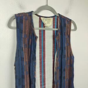 Ace & Jig Open Cardigan Sweater Womens Small Blue Brown Sleeveless Lagenlook Vest