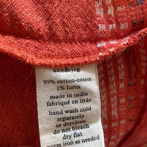 Ace & Jig sz S/P salmon orange dress with pockets cottons with metallic thread