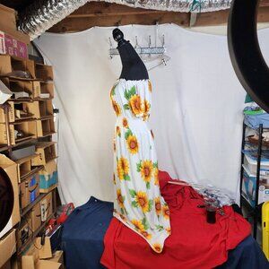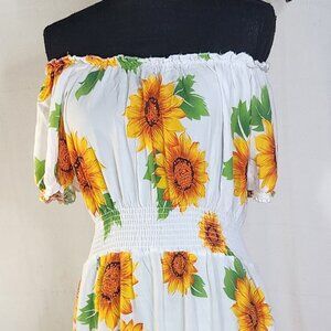 Ace White Yellow Orange Green Sunflowers Smocked Waist Drop Shoulder Maxi Sz 1X