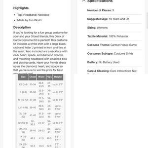 Halloween, costume, women’s, unisex, ace of spades, size, medium, large, party, cards, new with tags, trick-or-treat, school