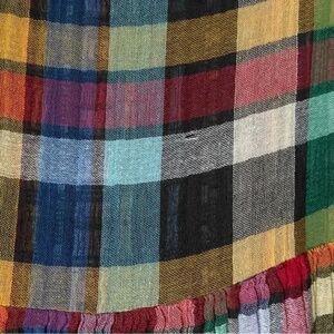 Soft, doublecloth in Dream, lined with Kaleidoscope. Pockets! A few loose threads and holes in weaving, typical of this textile.