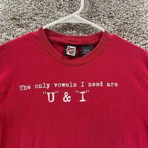 Ace Of Hearts Shirt Mens Medium Red Short Sleeve Only Vowels U & I Cotton Adult