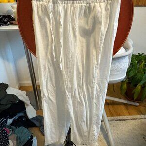 Acelitt Drawstring Elastic Waist Pants with Pockets, White Size SM