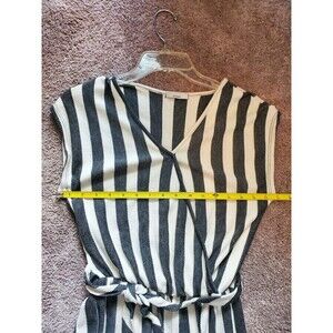 Acemi Striped Jumpsuit Cropped Leg Elastic At Waist Modesty Button At Chest THERE ARE NO SIZE TAGS. THE PIECE APPEARS TO BE A SIZE MEDIUM TO ME BUT YOU MUST LOOK AT THE PICTURES TO DETERMINE SIZE! Waist is elasticized and has a cloth tie at Waist. You can wear the neckline with a low plunge or Button up for more coverage. Please see pictures for measurements.