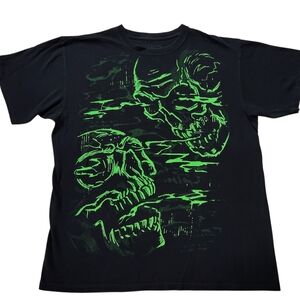 Aces & Idols Neon Green Grunge Skull Graphic Tshirt Sz L