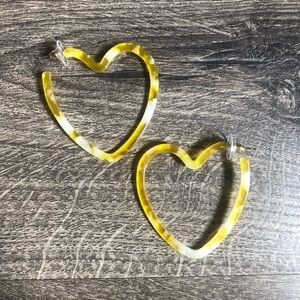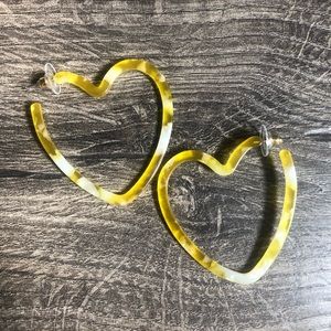Acetate Heart Shaped Hoop Tortoise Earrings Yellow