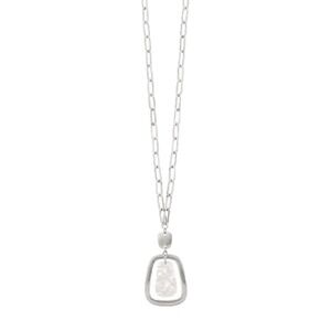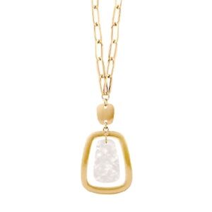• Design: A pendant that combines acetate and metal elements for a chic, contemporary style