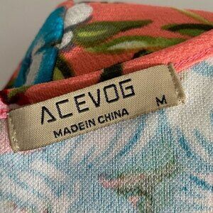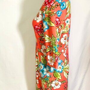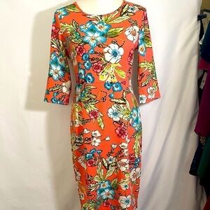 Acevog Peach Floral Shift Midi Dress with 3/4 sleeves, zippered back, round neckline
